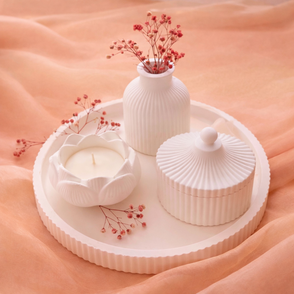Beton 4'lü Dekoratif Set -Çiçek DAHİLDİR