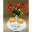 Gold Balkabaklı Kokulu Mum Dekoratif Set -Tabak & Çiçek DAHİL