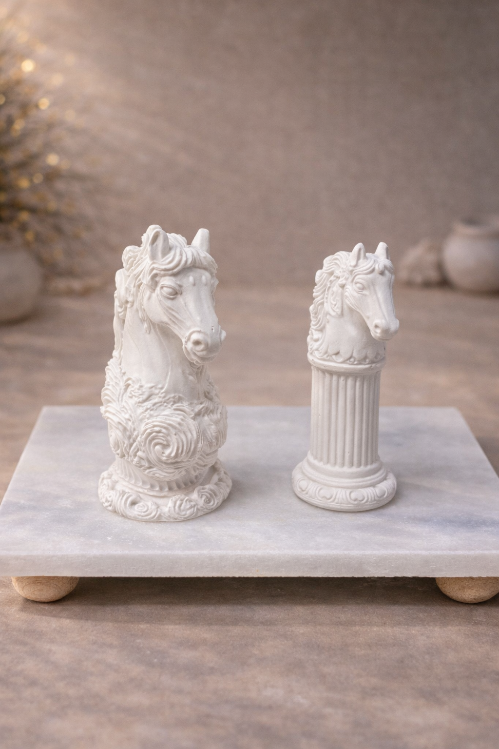 İkili At Sütun Model Dekoratif Beton Figür