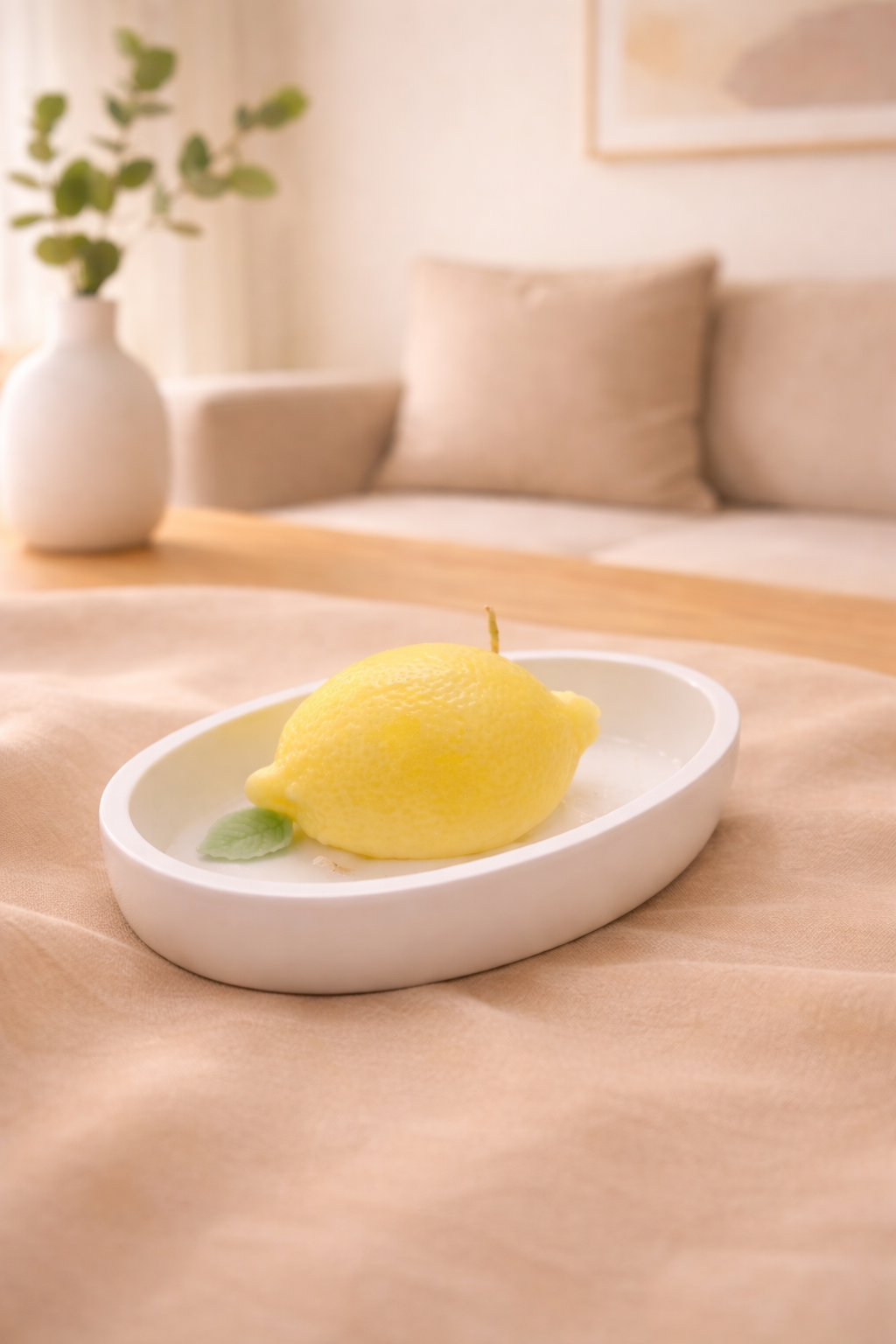 Limon Motifli Kokulu Kayık Tabakta Mum